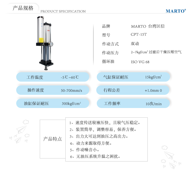 CPT-15T標(biāo)準(zhǔn)型氣液增壓缸產(chǎn)品特點(diǎn)